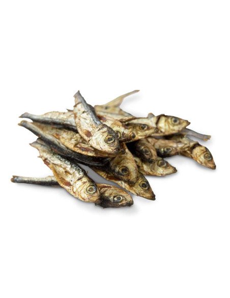 Los Espadines Deshidratados Natural Greatness son un snack 100% natural, elaborado a baja temperatura para conservar intactos todos sus nutrientes, vitaminas y sabor auténtico. Su textura crujiente y aroma intenso los convierte en una recompensa irresistible para tu perro, ideal para estimular su apetito y favorecer la masticación.
