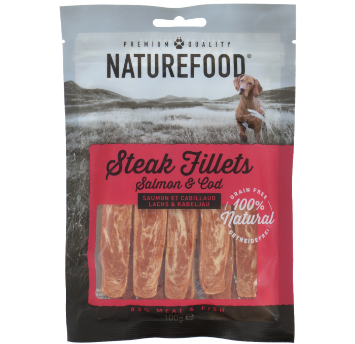 Deliciosos filetes de salmón de carne blanda lo que es muy apropiado para perros con algún problema de dentadura