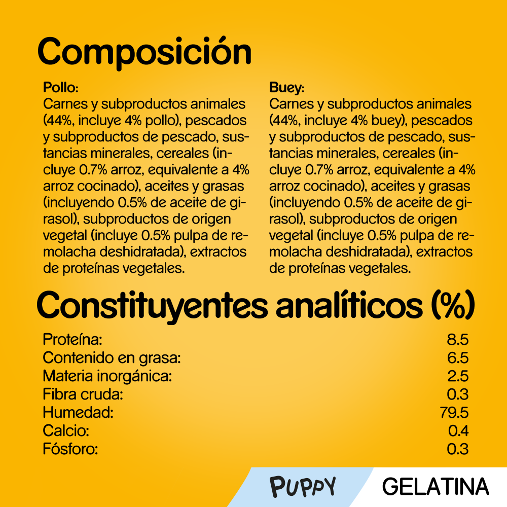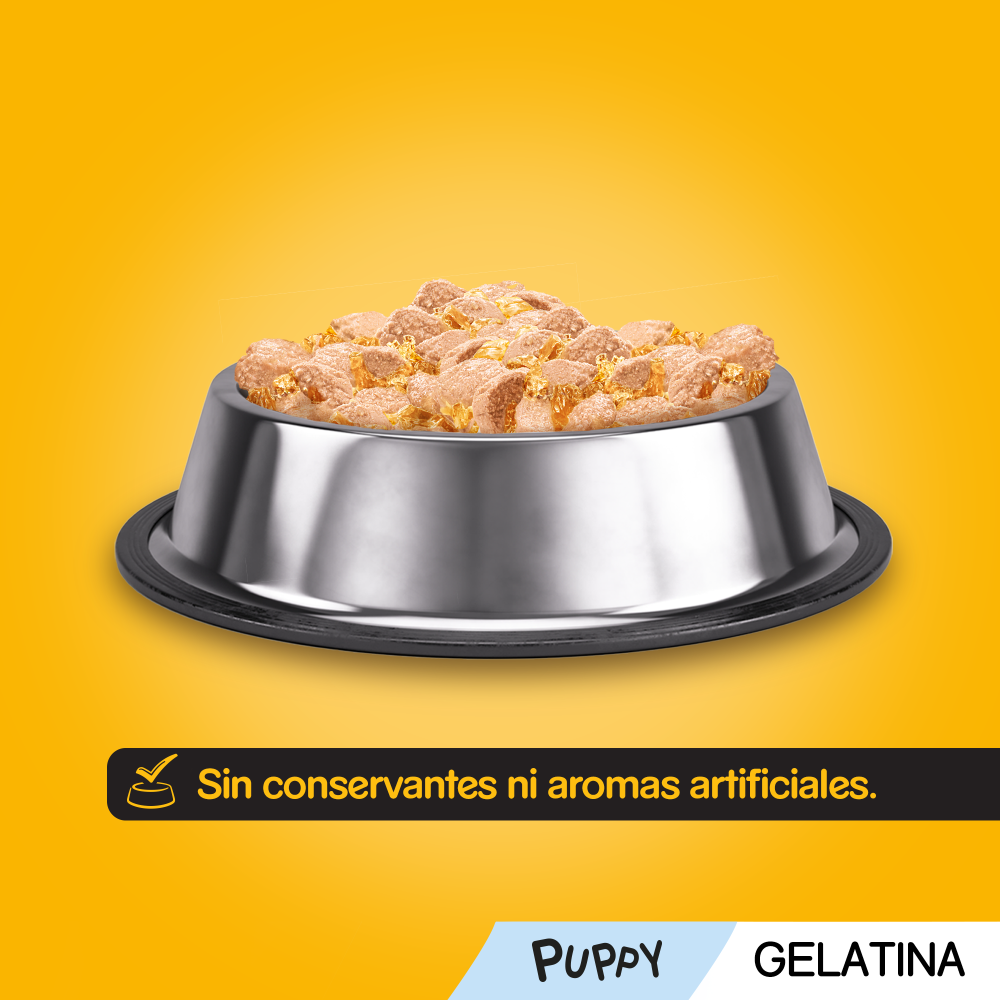 La comida húmeda Pedigree Junior sabor pollo y buey con arroz ha sido especialmente desarrollada para cubrir las necesidades nutricionales de los cachorros durante su etapa de crecimiento. Su textura en gelatina suave y muy palatable facilita la masticación y hace que cada comida sea irresistible para los perros jóvenes.