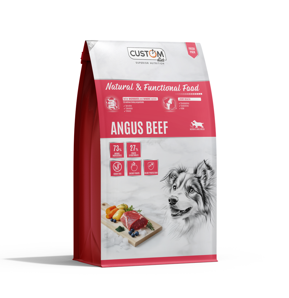Si buscas un pienso natural para perros que combine sabor irresistible, alta digestibilidad y una nutrición equilibrada, el Custom Diet Angus Beef es la elección perfecta.