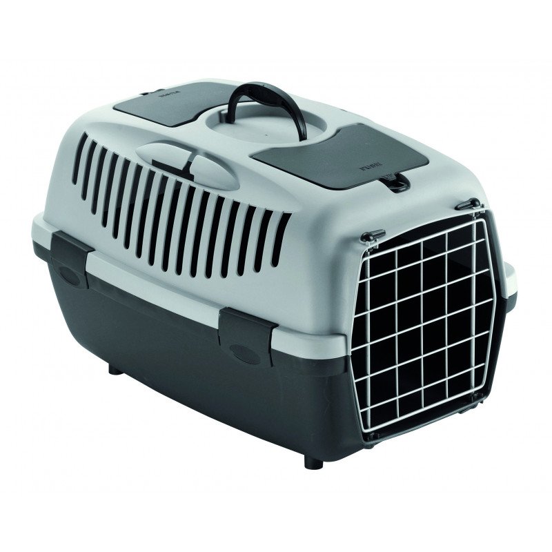 Transportín Gulliver con puerta metálica y bandeja portaobjetos.