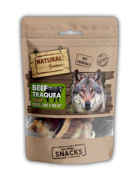 Los Trocitos de Tráquea de Vacuno Deshidratados Natural Greatness son un snack natural y saludable, elaborado con 100% carne de vacuno de grado humano y deshidratado a baja temperatura para conservar todos sus nutrientes y su sabor auténtico.