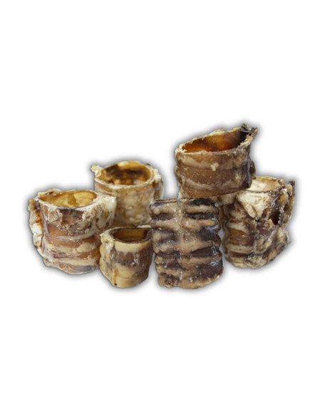 La tráquea de vacuno es rica en glucosamina y condroitina, nutrientes esenciales para el cuidado de las articulaciones y con efecto antiinflamatorio, contribuyendo al bienestar y movilidad de tu mascota.